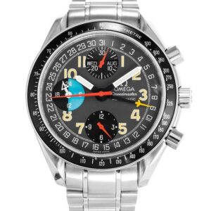 OMEGA SPEEDMASTER DAY DATE MEN’S WATCHOmega Speedmaster Day Date Model number: 3520.53.00 Size: Men’s Case Material: Stainless Steel Case Dial Color: Grey Dial Bracelet/Strap: Stainless Steel Bracelet Clasp Type: Push Button Folding Clasp Movement: Automatic Movement Screw…